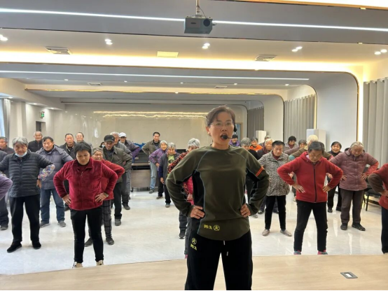 活动现场暖意融融,志愿者首先带领老人们学习八段锦。考虑到老年人身体状况,志愿者放慢动作节奏,逐式拆解招式要领,耐心讲解呼吸配合技巧,手把手纠正动作姿势。老人们精神饱满、认真跟随练习,一招一式虽稍显缓慢却格外认真,现场氛围热烈而有序。通过简单易学的八段锦锻炼,不仅帮助老人们活动筋骨、舒缓身心,更让大家掌握了便捷实用的日常健身方法。