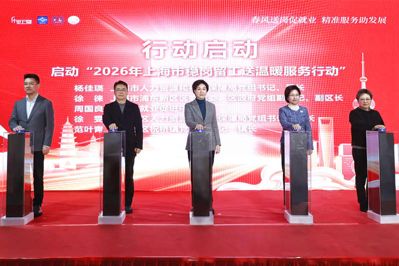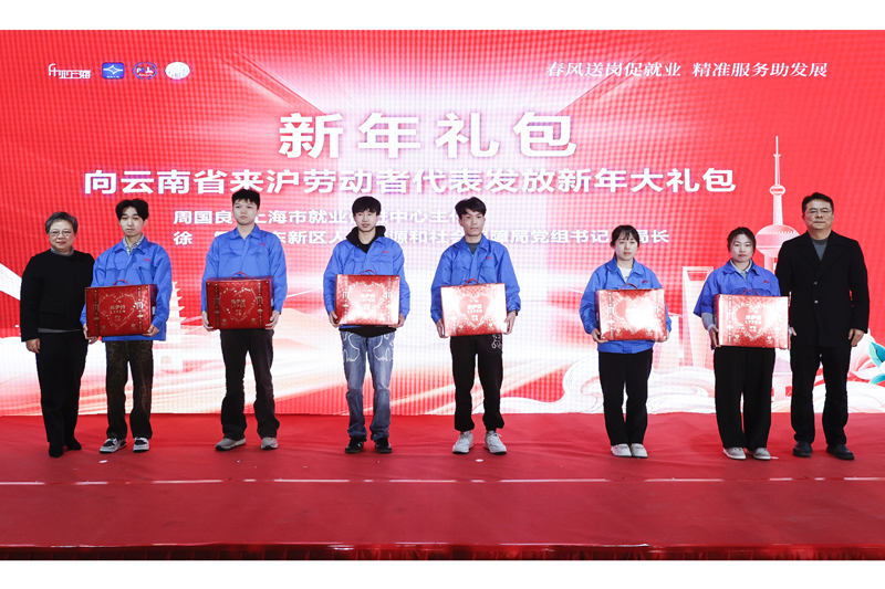 为全力做好元旦春节前后劳动者稳岗留工、返岗复工以及企业复工复产用工保障等工作,1月4日,2026年上海市稳岗留工送温暖服务行动启动仪式暨2026年上海市首批来沪人员接机欢迎仪式、上海市“百企千岗•春暖农民工”专场大型招聘会在浦东新区祝桥镇零工市场举办。市人力资源社会保障局党组书记、局长杨佳瑛,浦东新区区委常委、区政府党组副书记、副区长徐徕出席活动。来自云南省怒江和大理州人社部门代表、重点用工企业代表以及新年首批来沪就业的云南籍劳动者代表共同参与本次活动。