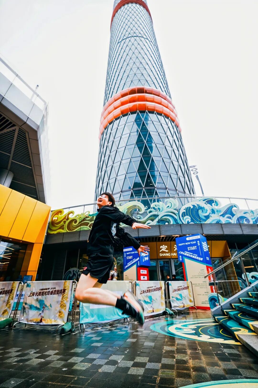 1月1日,“中国体育彩票”2026上海长滩观光塔垂直登高赛鸣枪开跑。200名选手在180米高的“定海神针”观光塔内奋力攀登,以脚步叩响新年序曲。赛事巧妙融入“孙悟空与金箍棒”主题,台阶上“金箍挑旧岁,云阶载新程”等励志标语激励选手突破自我。竞速组与大众组的分设兼顾专业竞技与全民参与,让不同水平的跑者均能享受挑战的乐趣。长滩观光塔作为新兴地标,其360度观景平台为选手与观众提供了俯瞰长江、黄浦江与城市景观的绝佳视角,成为赛事的一大亮点。