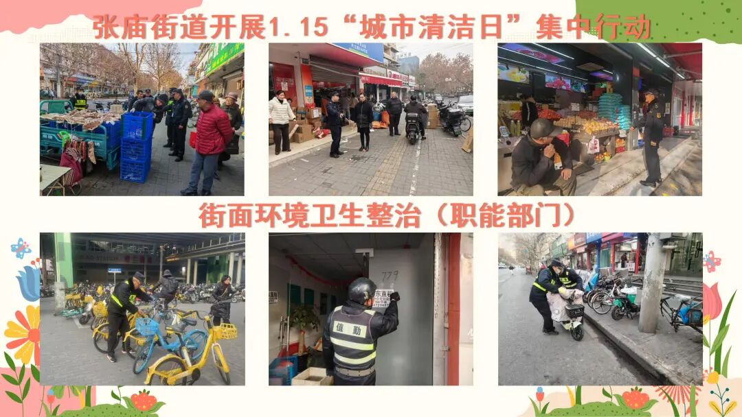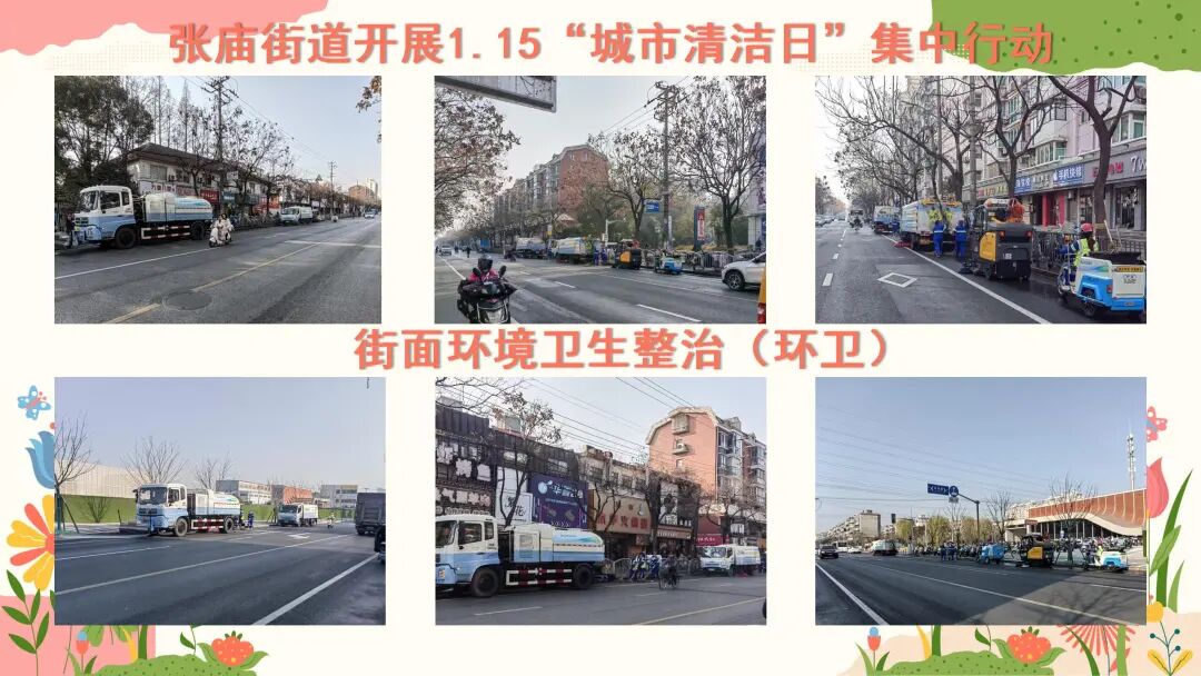 张庙街道机关志愿者重点清理了绿化带垃圾、规范共享单车停放并清除黑广告,同时对轨交站点及周边区域开展大清洁,加强非机动车有序停放的宣传引导;社区志愿者则负责楼道和绿化带的堆物清扫与卫生死角清理,同时开展小包垃圾、干湿垃圾混投专项整治、垃圾分类宣传告知;综合行政执法队员对沿街商户进行门责宣传,普及市容环境卫生责任人权利和义务,督促其规范经营;净南环卫公司也对主要道路和重点区域进行冲洗和深度清洁作业。