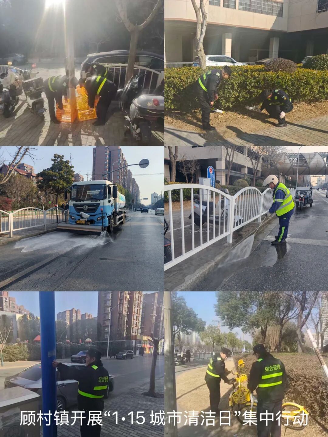 顾村镇集中开展“门责联动全知晓”城市清洁日行动。全域门责宣传,宣传引导街面、菜场商户落实门前责任,普及市容环境卫生责任人权利和义务。门责大清洁,围绕天仁路菜场等重点区域,组织商户及志愿者清理卫生死角、清除黑广告。道路大冲洗,对沪联路、陆翔路等主次干道、绿化带等开展拉网式冲洗保洁,清理落叶与积存垃圾。清除“小广告”,集中清理墙面、电线杆、站台等处的乱张贴、乱涂写。居住区大扫除,宝顾佳苑、青秀苑等居民区发动志愿者清理楼道堆物、铲除“牛皮癣”,并同步开展垃圾分类宣传引导。轨交站点周边环境专项整治,在7号线、15号线等轨交站点宣传引导市民、商户规范停放车辆,及时整理乱停车辆。