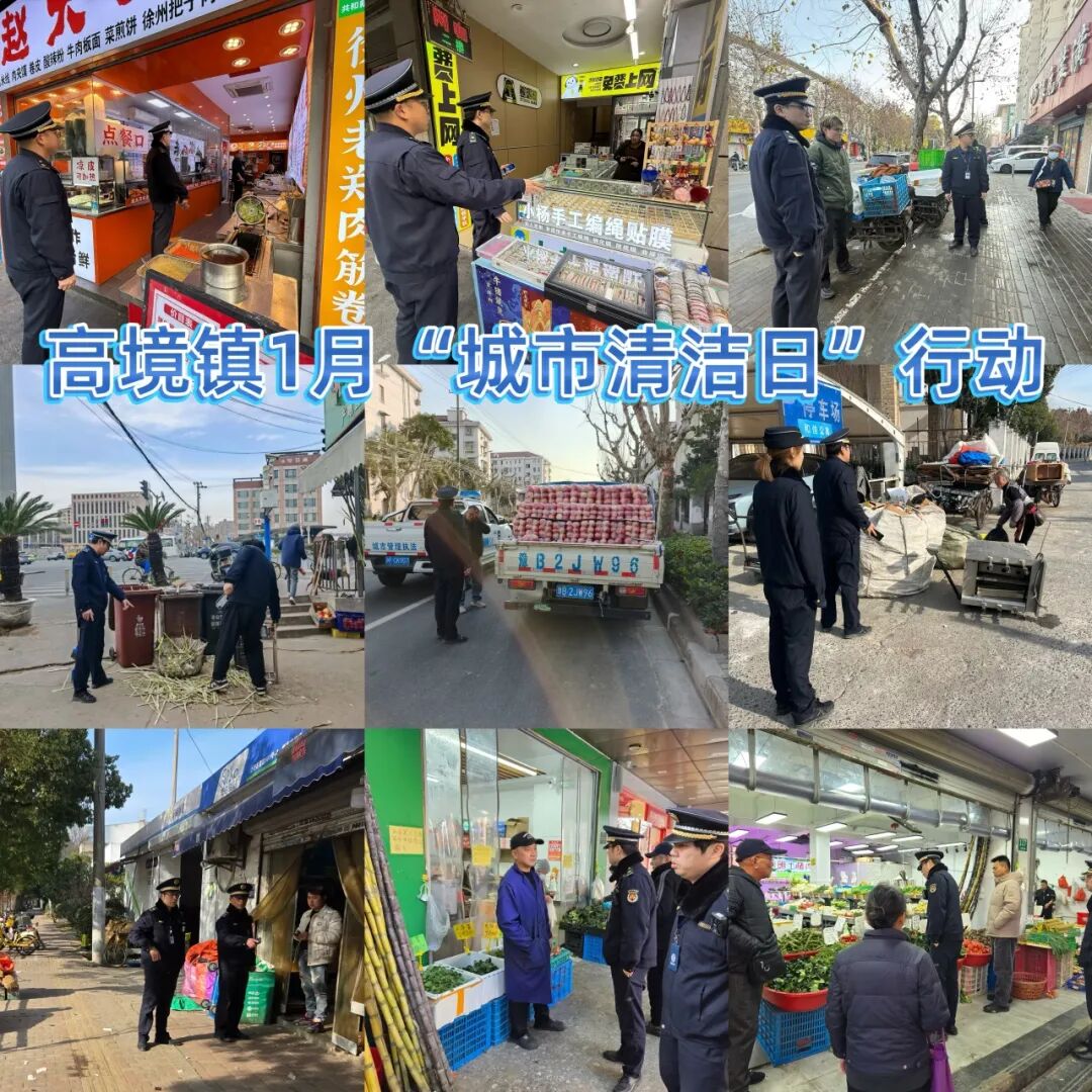 高境镇各门责单位及自律组织主动作为,积极清除地面、墙面的污渍和非法小广告,并对门窗、店招、雨棚进行了擦拭与维护,实现橱窗净、门面美。高境环卫组织人员围绕重点区域开展清洁整治,使用人工和机械协同方式对路面、人行道、路面路沿石衔接处、井盖表面等不洁区域加大冲洗力度,清除积污,展现路面本色;高境镇综合行政执法队通过街面巡查,对在巡查中发现的跨门经营、跨门堆物等违法行为,现场督促商户整改;各居民区组织志愿者、物业等多方力量对楼道堆物、绿化带隐匿垃圾、公共区域乱张贴、小包垃圾随意丢弃及干湿垃圾混投现象开展专项治理。