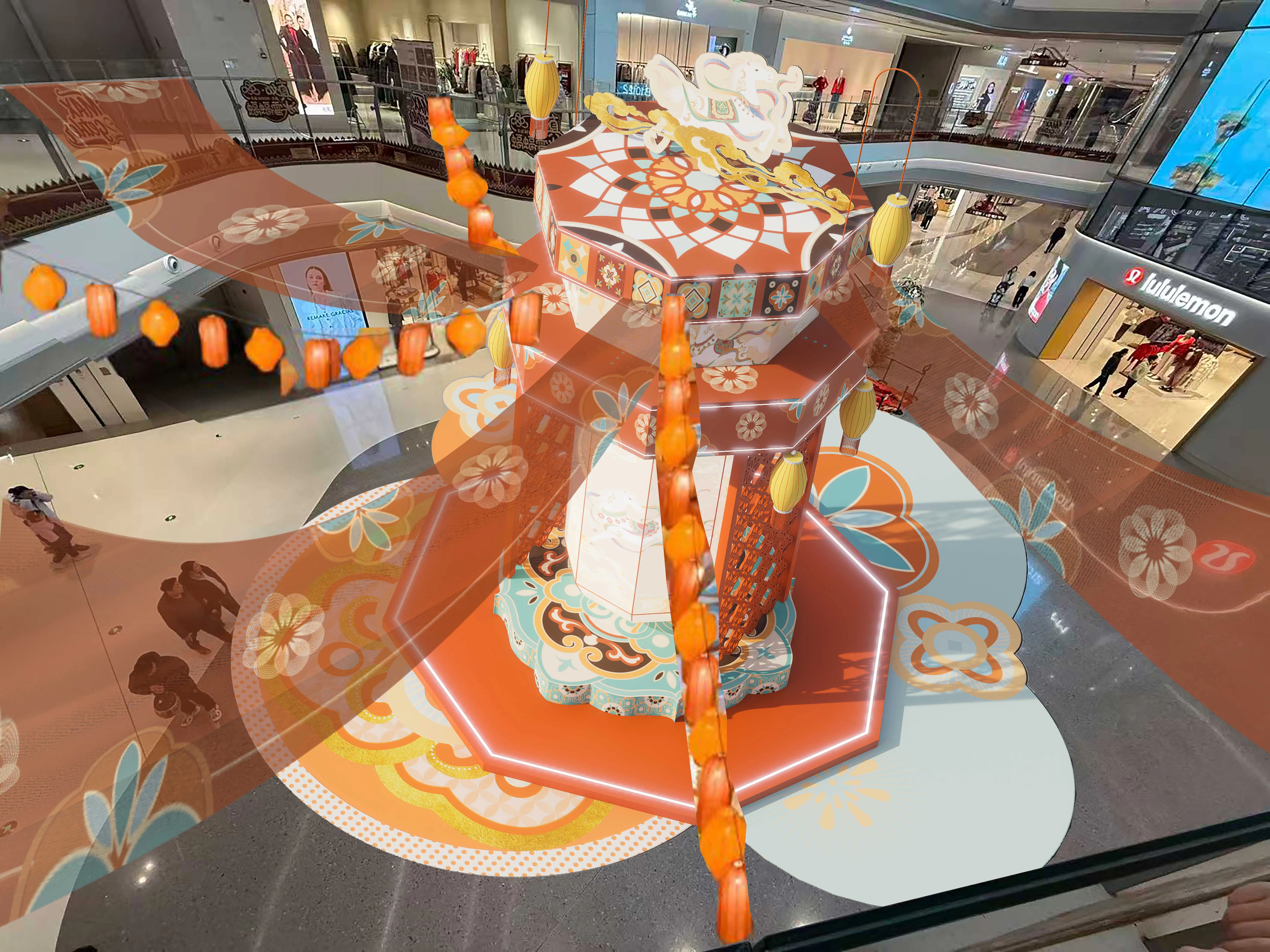 氛围营造同步升级,春节期间全区景观照明延长启闭时间,多个点位播放马年主题夜景视频;真如商圈、天安千树、长风大悦城等实施灯光亮化工程,串联半马苏河滨水盛景。各大商圈布置马年美陈与地标装置,多条道路悬挂灯笼、中国结,年味十足。