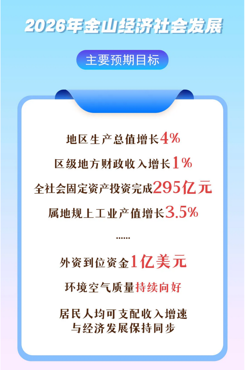 2026年金山经济社会发展主要预期目标