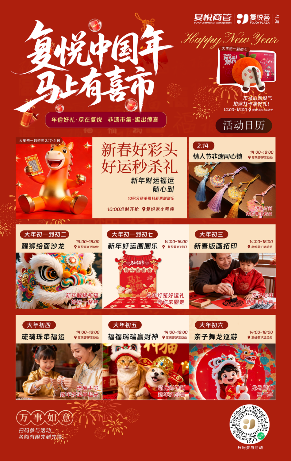 除了上海真如环宇城MAX外,同在真如商圈的多家商场也推出了惊喜活动。上海复悦荟推出“复悦中国年·马上有喜事”新春活动,以“巨鱼入城鱼灯巡游”为亮点,开展真如区域巡游,同步推出“马上有喜事”年货大集、亲子舞龙巡游、非遗鱼灯课堂以及新春年俗沙龙,全面覆盖新春档期。