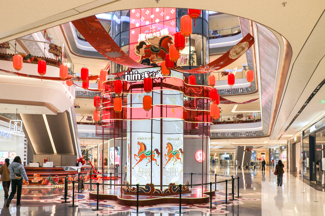 在上海真如环宇城MAX1楼中庭广场,一座近8米高的新春非遗宫灯美陈格外吸睛,成为商圈最具辨识度的新春年味地标。