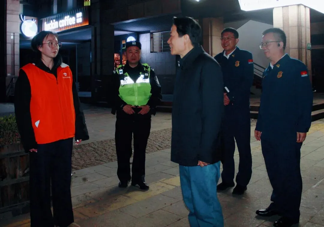 2月20日夜间至21日凌晨,区委书记陆方舟率队以“四不两直”方式,前往区总值班室、居民小区及大治河以南烟花爆竹集中燃放点,实地检查节日期间烟花爆竹燃放管理、消防安全及值班值守工作,并向坚守岗位的一线工作人员表示慰问。他强调,要深入学习贯彻习近平总书记关于安全生产的重要指示精神,始终坚持人民至上、生命至上,按照市委、市政府部署要求,压紧压实各方责任,强化全链条安全监管,确保广大市民平安过节和城市平稳有序运行。