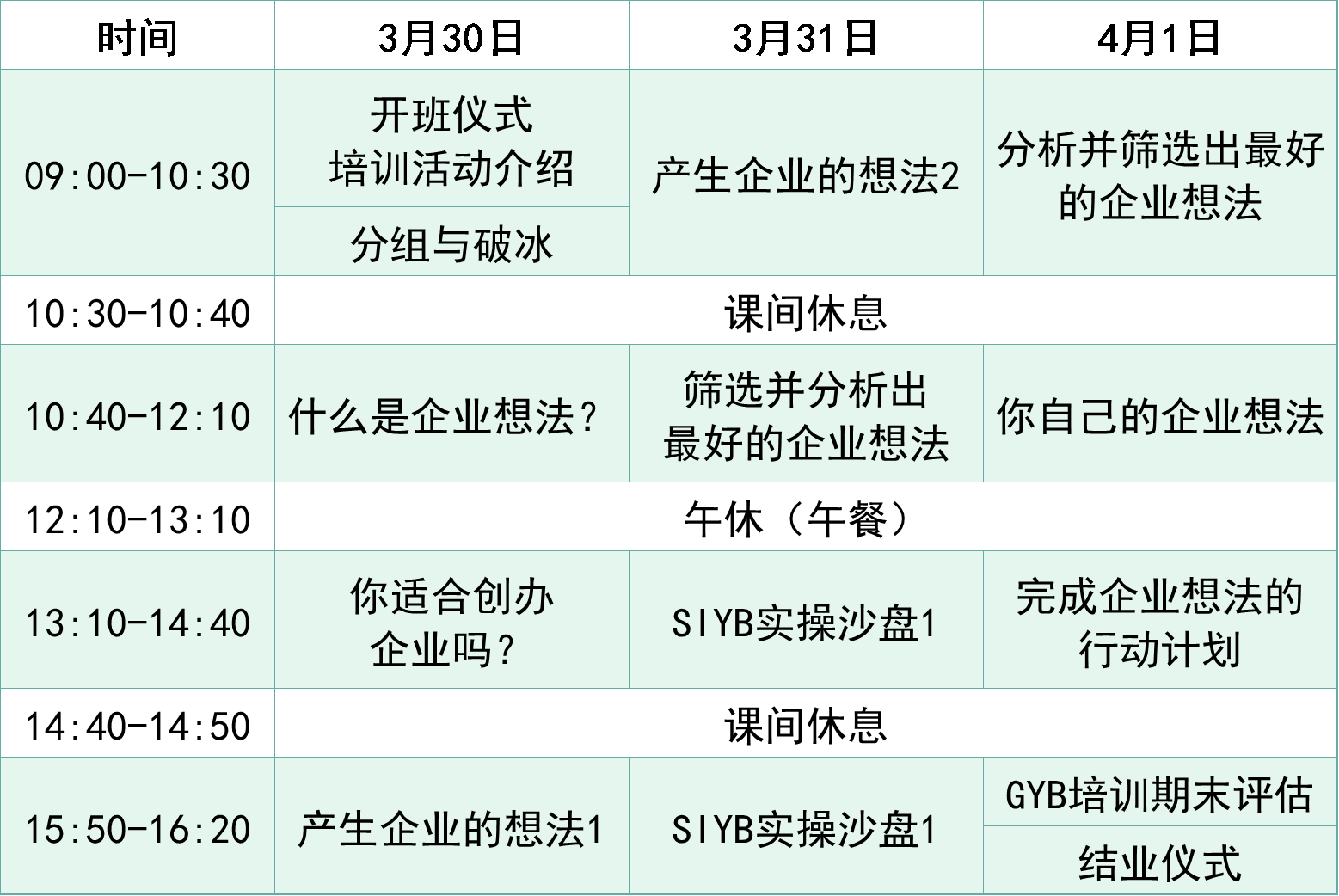 产生你的企业想法(GYB):旨在帮助创业者了解什么是企业和企业想法,分析评估是否适合创业,掌握产生企业想法的方法,并筛选出适合自己的创业项目。