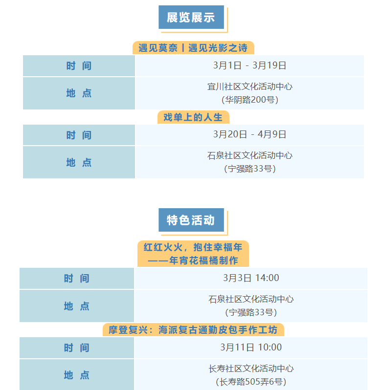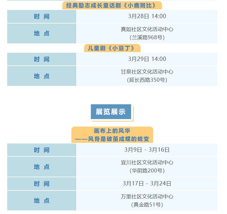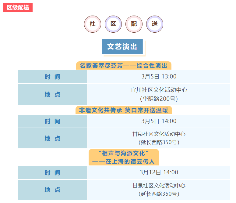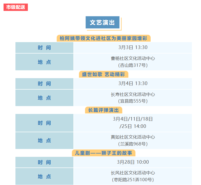 普陀区3月文化配送活动(市级配送、区级配送)预告来啦!