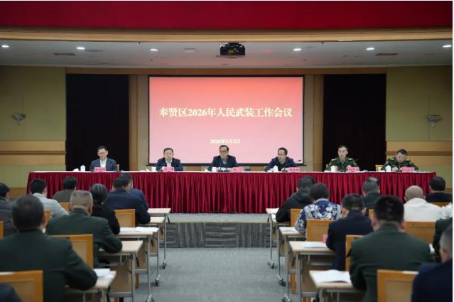 3月3日上午,奉贤区召开2026年人民武装工作会议,深入学习贯彻习近平强军思想,认真落实警备区党委十四届六次全体(扩大)会议精神,总结去年工作,部署今年工作任务。区委书记、区人武部党委第一书记刘平出席会议,为新任职的基层武装部政治教导员颁发任命状,对基层人民武装工作述职情况进行讲评,并强调,要深入贯彻习近平强军思想,锚定目标、攻坚克难,奋力推进我区人民武装工作迈上新台阶,为加快推进国防和军队现代化建设作出奉贤应有贡献!区委副书记唐晓腾传达上海警备区党委十四届六次全体(扩大)会议精神。