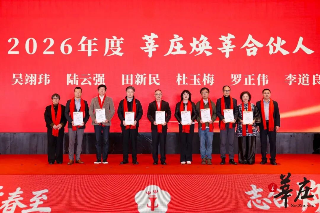 田新民等8位产业领军人物获颁2026年度莘庄焕莘合伙人聘书,为莘庄发展提供专业智力支撑。