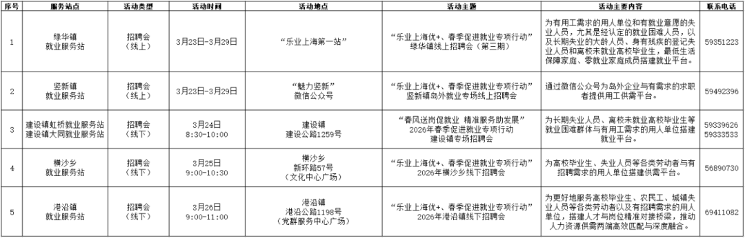 活动内容:“春风送岗促就业 精准服务助发展”青浦区2026年返岗促就业春季综合招聘会