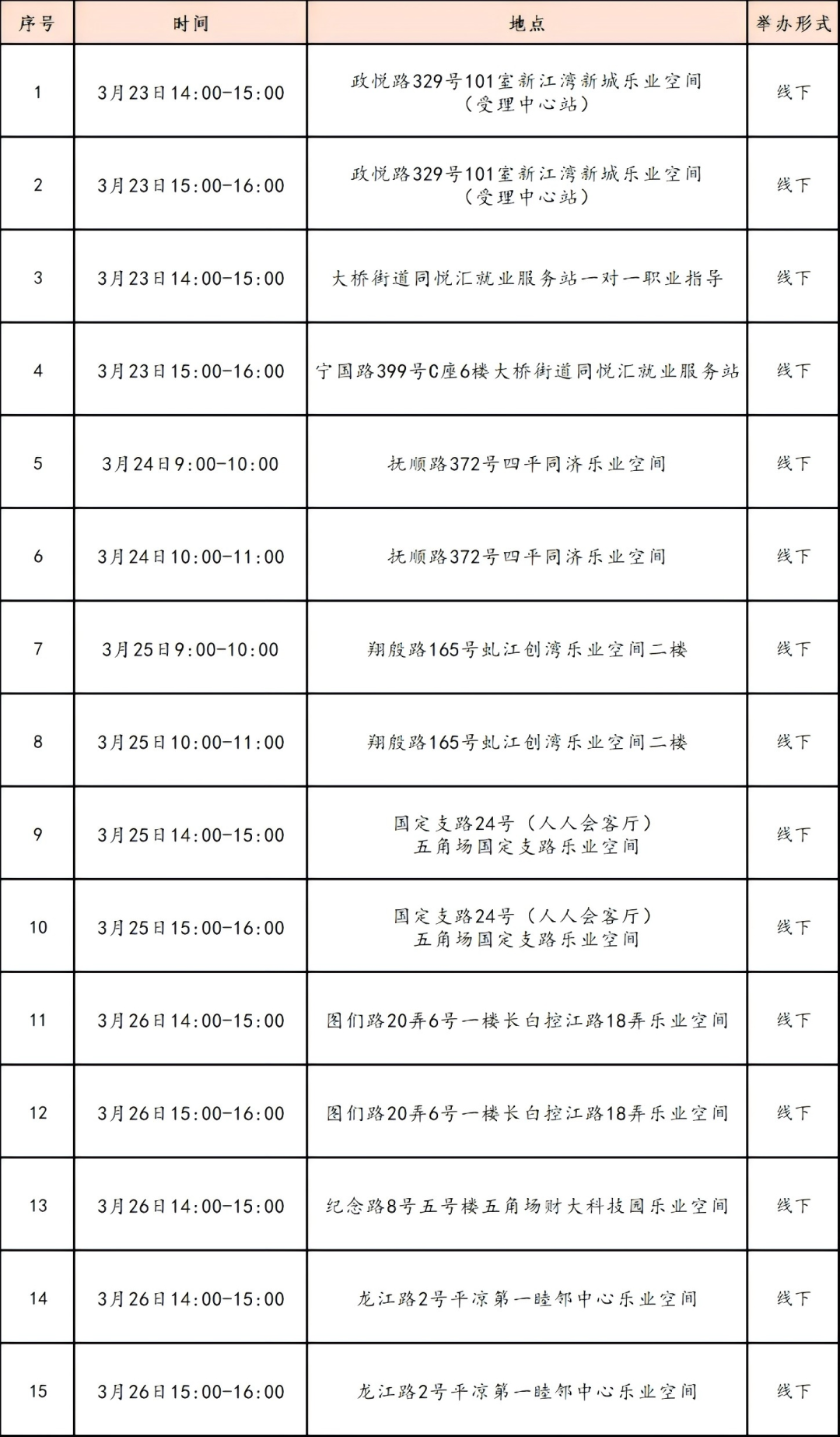 活动地点:桃浦东部党群服务中心社区就业服务站(真南路822弄450号)