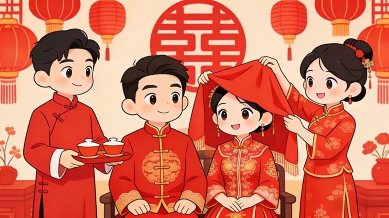 傧相是中式婚礼中的重要礼仪人员,最早分为“傧”与“相”,“傧”为接引宾客之人,“相”为辅佐行礼之人,后来逐渐合二为一,成为陪伴新人、引导仪式的角色。在传统婚礼中,傧相多由品行端正、亲友中的适龄男女担任,负责陪伴新人完成迎亲、过门、拜堂等流程,提示礼仪、应对礼节,维持仪式秩序。