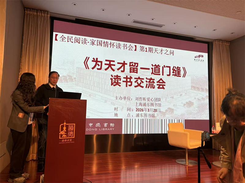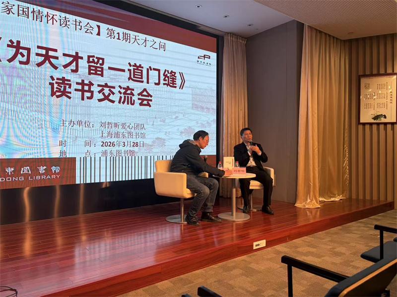 2026 年 3 月 28 日下午,由刘哲昕爱心团队与上海浦东图书馆联合主办的【家国情怀读书会】第 1 期读书分享会在浦东图书馆圆满落幕。本次活动以“天才之问” 为核心主题,围绕刘哲昕教授新作《为天才留一道门缝》展开深度研讨,聚焦原创创新、航天发展、教育公平、天才培养与全民阅读等热点话题,吸引众多关注人才培养、热爱深度阅读的书友到场,共探科创人才培育的未来方向。