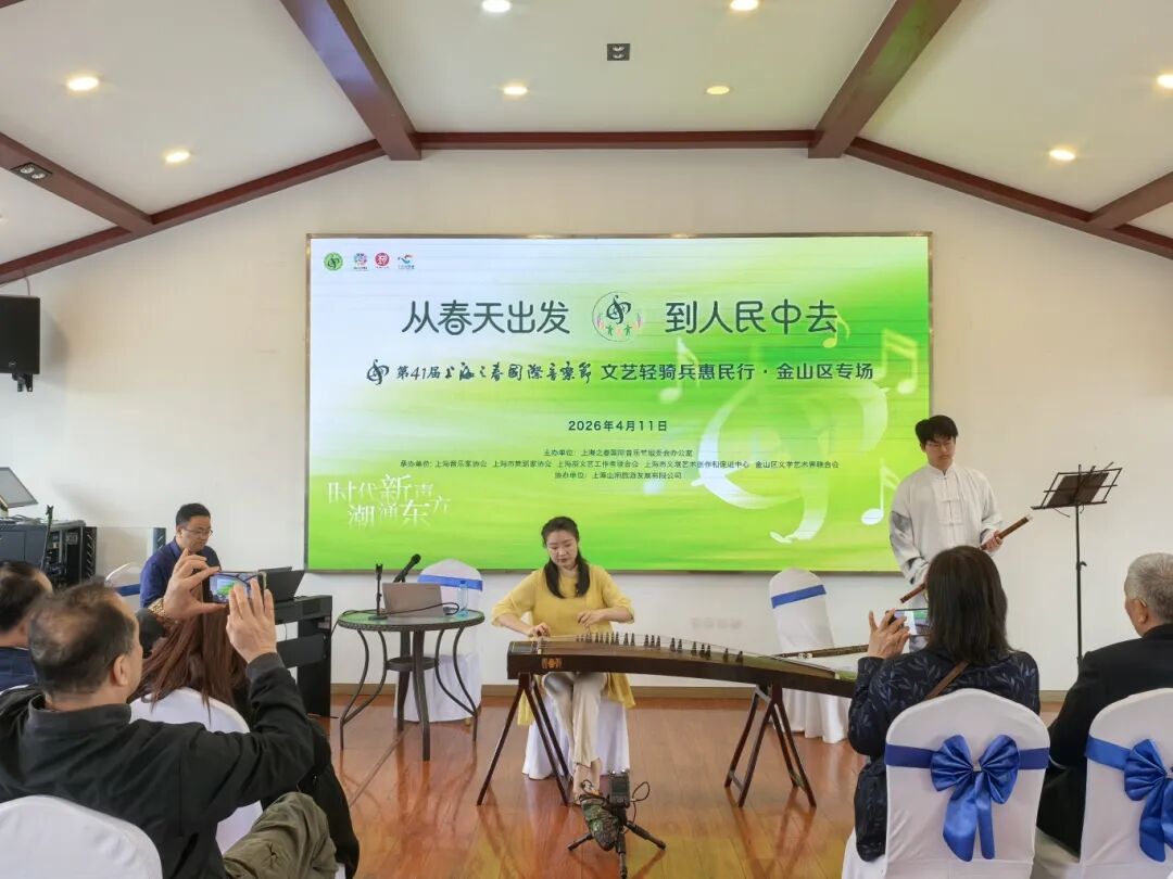 4月11日,第41届上海之春国际音乐节“从春天出发到人民中去”文艺轻骑兵惠民行金山区专场,在烟雨朦胧的山阳田园举行。碧水绕亭、林翠风柔,悠扬国乐与春日风光相融相映,以“田园+艺术”的新模式,生动书写金山文商旅体展农深度融合的动人篇章。