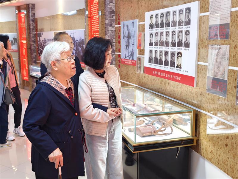 在展馆里,粟裕大将的次子粟寒生夫人钱瑞娟,王必成中将的女儿王苏炎,刘文学少将的女儿刘晓文,范敏烈士的亲人范晓影,张鏖将军的儿子张健儿等一行认真听取了介绍,细心地观看了当年的革命历史资料,令人十分动容。他们说,老一辈为了祖国的尊严和民族的解放在抗日战争和解放战争中不怕流血牺牲,舍生忘死,这种对党对国家对人民的忠诚值得我们后人好好学习。
